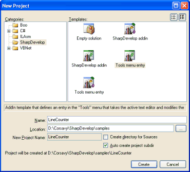 binding comes with its own project class (but SharpDevelop contains the classes
